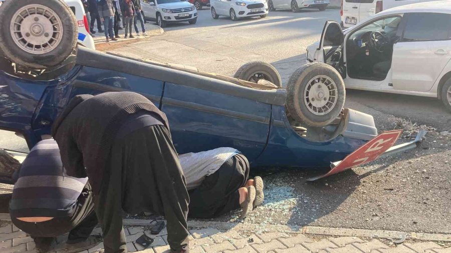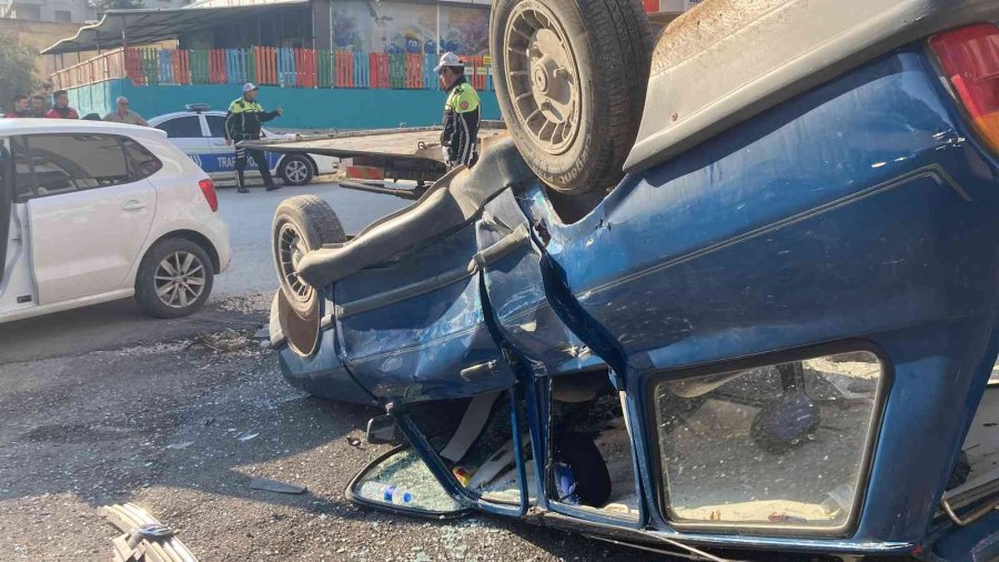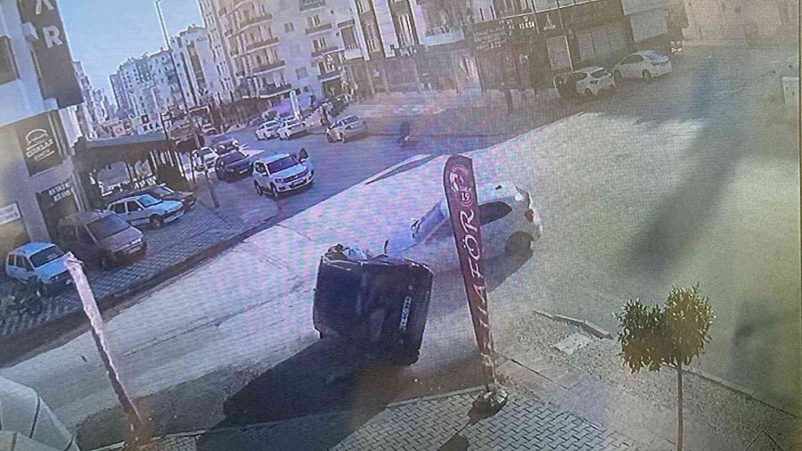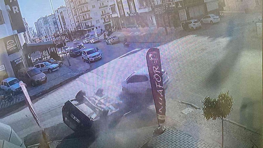 Mersin'de iki otomobil çarpıştı, biri ters döndü. Sürücülerin yara almadan kurtulduğu kaza anı ise saniye saniye güvenlik kamerasına yansıdı.