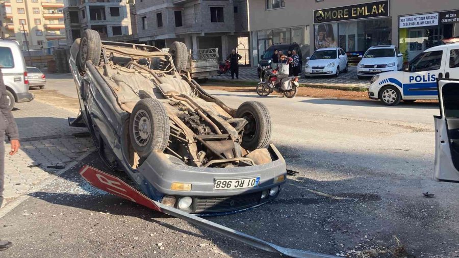 Otomobiller Çarpıştı, Biri Ters Döndü: O Anlar Kamerada