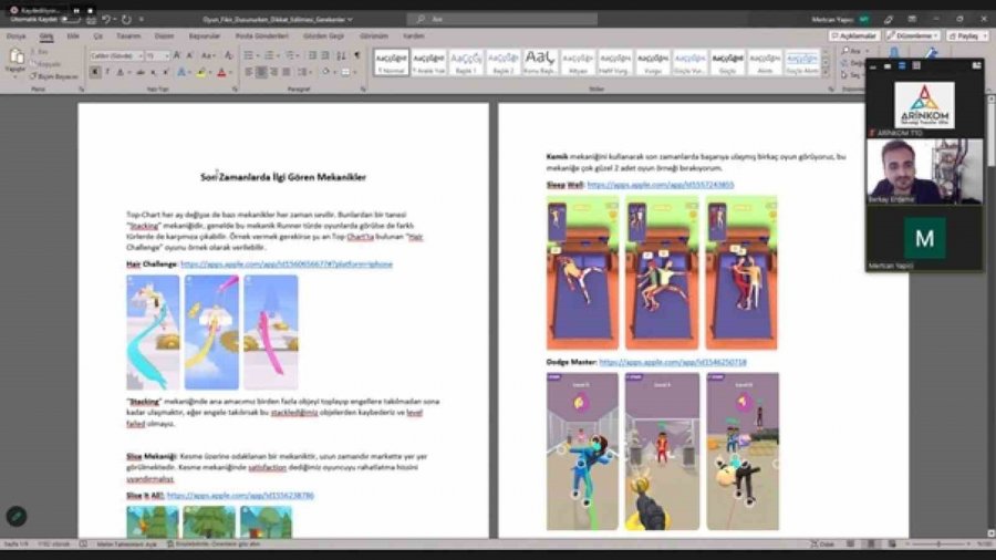 ARİNKOM uzmanlarının da katılım gösterdiği görüşmelerde ürün geliştirme, yeni iş fikri üzerine fikir alışverişinde bulunma, fikri hakka konu çalışmaları tespit etme gibi farklı yenilikçi çıktılar elde edilmesi amaçlanıyor. Katılımcıların oyun ve animasyon alanındaki fikir ve ürünlerinin ticarileşme seviyesine getirilmesi için mentorların büyük katkısının olduğu düşünülüyor.