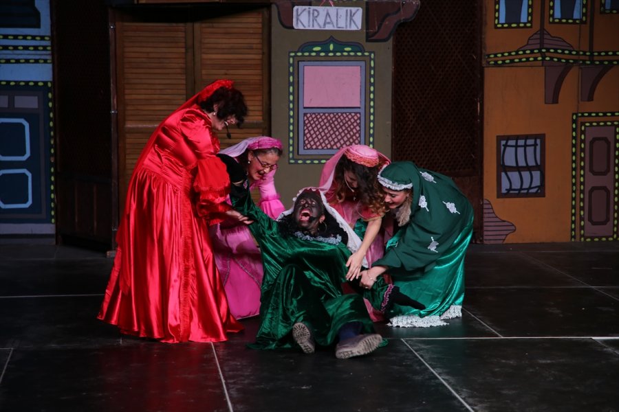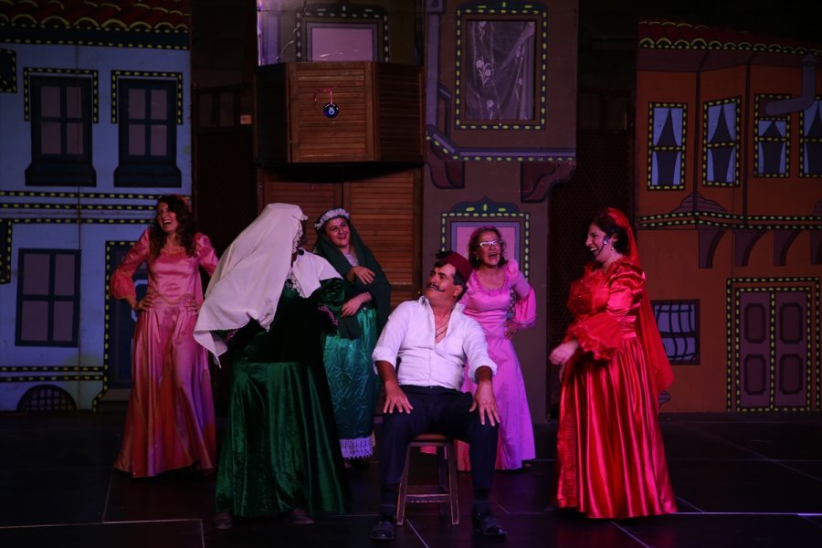 Yeni tip koronavirüs (Kovid-19) tedbirleri kapsamında ateş ölçümü yapılarak ve maske takma zorunluluğuyla salona alınan davetliler, Yeşilköy Halk Tiyatrosunun çeşitli meslek grubundan oyuncularının, Kaş Belediyesinin desteğiyle sahnelediği "Kanlı Nigar"ı izledi.