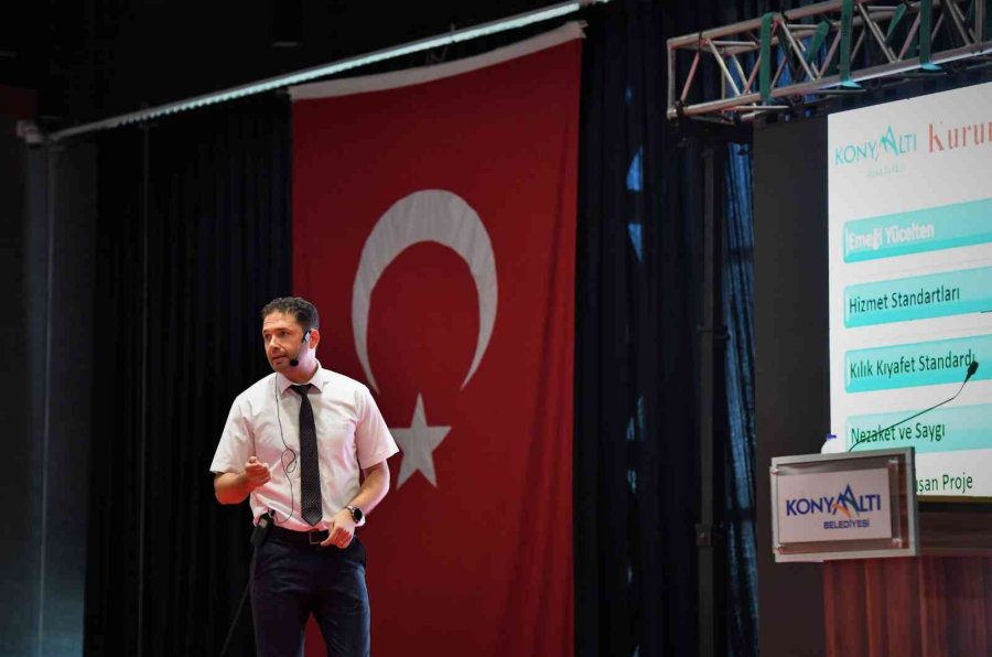 Çalıştayda, Eğitmen Funda Atay Taşkıran ve Dr. Murat Kaplan da misafir konuşmacı olarak yer aldı. Personelin daha iyi şartlarda çalışmasını önemsediklerini ifade eden Konyaaltı Belediye Başkanı Semih Esen, "İnsan mutlu olduğu yerde canla başla ve daha verimli çalışır. Biz de çalışma arkadaşlarımızı mutlu etmek istiyoruz" dedi.