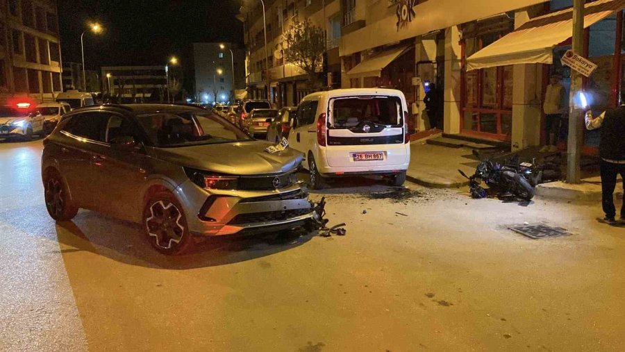 Eskişehir'de caddeden ara sokağa dönmeye çalışan otomobil ile park halindeki hafif ticari araca peş peşe çarpan motosikletin 20 yaşındaki sürücüsü...