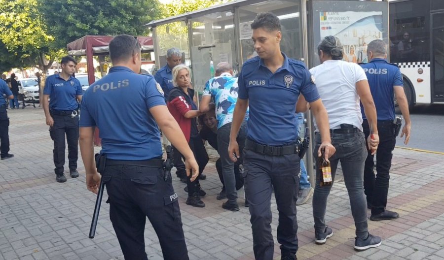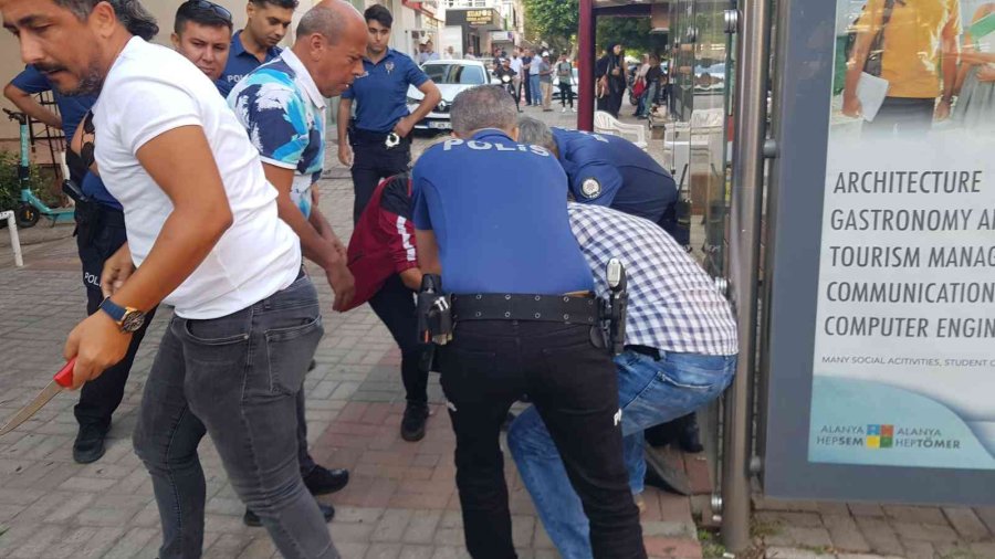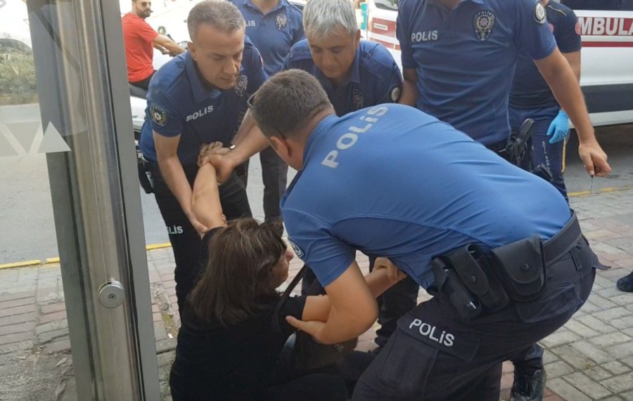 Olay, Alanya ilçesi Güllerpınarı Mahallesi'nde meydana geldi. Edinilen bilgilere göre, Menekşe S., ismi henüz öğrenilemeyen bir erkeği bıçakla kovalamaya başladı. Çevredeki vatandaşların ihbarı üzerine bölgeye polis ekipleri sevk edildi. Polis ekipleri, Menekşe S. tarafından kovalanan erkeği ekip aracına bindirdi. Kadın ise otobüs durağına yaslanarak yere oturdu. Menekşe S., kendisine yaklaşmak isteyen polislere elindeki bıçağı göstererek, "Bir adım daha atarsanız karnıma saplarım" tehdidinde bulundu. Kadını ikna çalışmalarına çevredeki bir market görevlisi kadın da dahil oldu. Market görevlisi eli bıçaklı kadına yaklaşarak başını okşadığı sırada bu durumu fırsat bilen polisler, bıçağı alarak kadını etkisiz hale getirdi. Sinir krizi geçiren Menekşe S. tekrar yere otururken, polisler de olay yerine sağlık ekiplerini çağırdı. Yerde oturduğu sırada çantasından ikinci bir bıçak çıkartan Menekşe S., polislere "Yaklaşırsanız kendimi keserim" tehditlerine devam etti. Olay yerine gelen sağlık ekipleri, Menekşe S.'nin sol kolundaki yaraya müdahale etmek istedi. Ancak Menekşe S., onların da yaklaşmasına izin vermedi. Polislerin ikna etme girişimleri sürdüğü sırada bir polis memuru Menekşe S.'ye arkadan yaklaşarak elindeki bıçağı aldı. Ambulansa bindirilen Menekşe S., sağlık ekipleri tarafından Alanya Eğitim ve Araştırma Hastanesine sevk edildi.