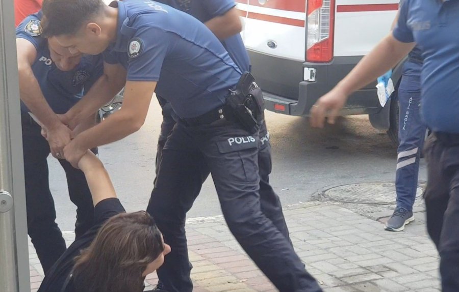 Antalya'nın Alanya ilçesinde bir erkeği bıçakla kovalayan kadın, polis ekiplerinin geldiğini görünce intihara kalkıştı. Elindeki bıçak alınan kadın, çantasından çıkardığı ikinci bıçakla yine intihara kalkıştı. Öfkeli kadın, bir anlık dalgınlığından yararlanan polis tarafından etkisiz hale getirilerek ambulansa alındı.