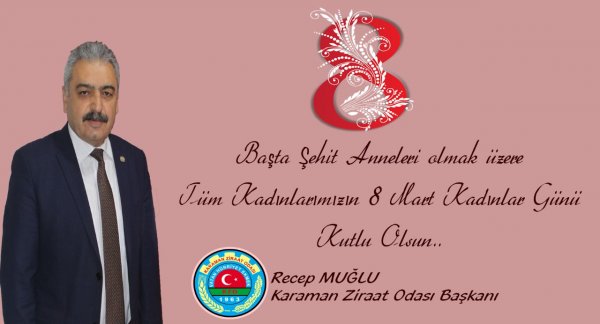 Karaman Ziraat Odası Başkanı Recep Muğlu 8 Mart Dünya Kadınlar Günü dolayısıyla bir mesaj yayınladı. Başkan Muğlu mesajında;