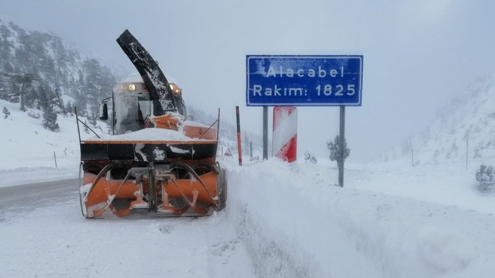 1825 rakımlı Alacabel mevkiinde etkili olan yoğun kar yağışı nedeniyle iki gündür kapalı olan Antalya'yı Konya'ya bağlayan Akseki-Seydişehir karayolu, 48 saat sonra yeniden araç trafiğine açıldı. İç Anadolu'yu Akdeniz'e bağlayan Alacabel mevkii, cumartesi günü öğle saatlerinde tüm araç trafiğine kapatılmıştı. Kar kalınlığının yaklaşık 2 metreyi bulduğu bölgede 800 metrelik alana dün de 3 metre yüksekliğinde çığ düşmüştü. Karayolları Alacabel ekiplerinin çalışmaları sonucu çok sayıda iş makinesi ile yol kardan temizlendi. Gece saatlerinde kar kütleleri kepçelerle yol kenarına atılarak, kar savurma makinaları ile de yoldan dışarıya atıldı. Kar yağışının etkisini azaltması ile birlikte Konya-Antalya karayolu, 2 gün aranın ardından tırlar hariç araç trafiğine açıldı. Karayolları Alacabel ekibi kardan dolayı daralan yolda kar temizleme çalışmaları yaparak, kar savurma makineleri ile de yığılan karları yoldan dışarı atma, temizleme ve tuzlama çalışmalarını sürdürüyor.