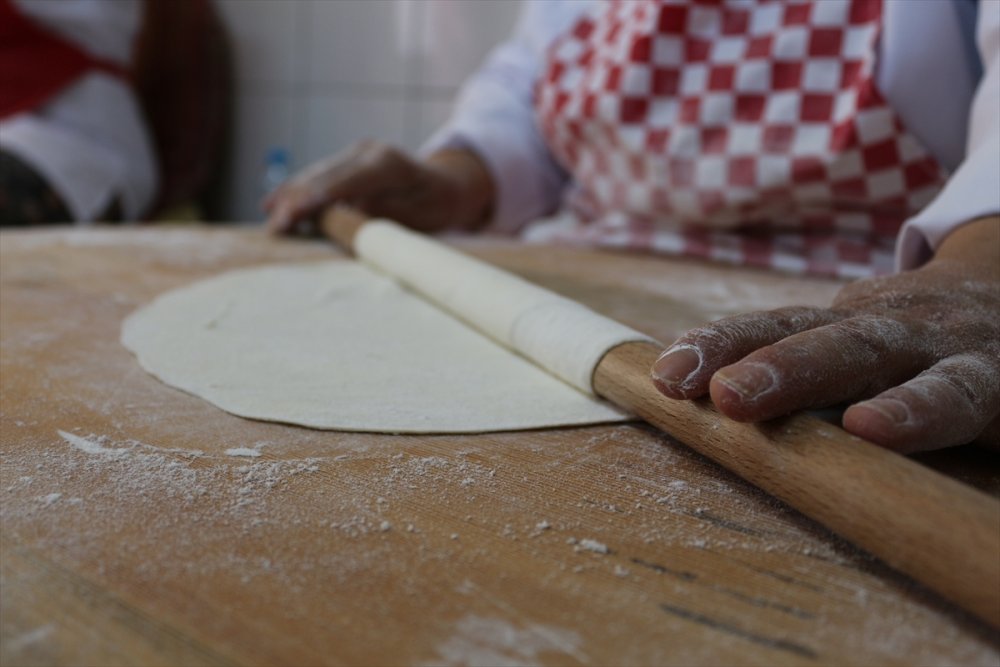 Hazırlanacak hamurun yufka haline gelmeden önce içine yoğurt, yumurta, sıvı yağ, az miktarda süt ve tuz katılarak "kulak memesi" kıvamında gelene kadar yoğurulduğunu kaydeden Zercü, tarifine şöyle devam etti: