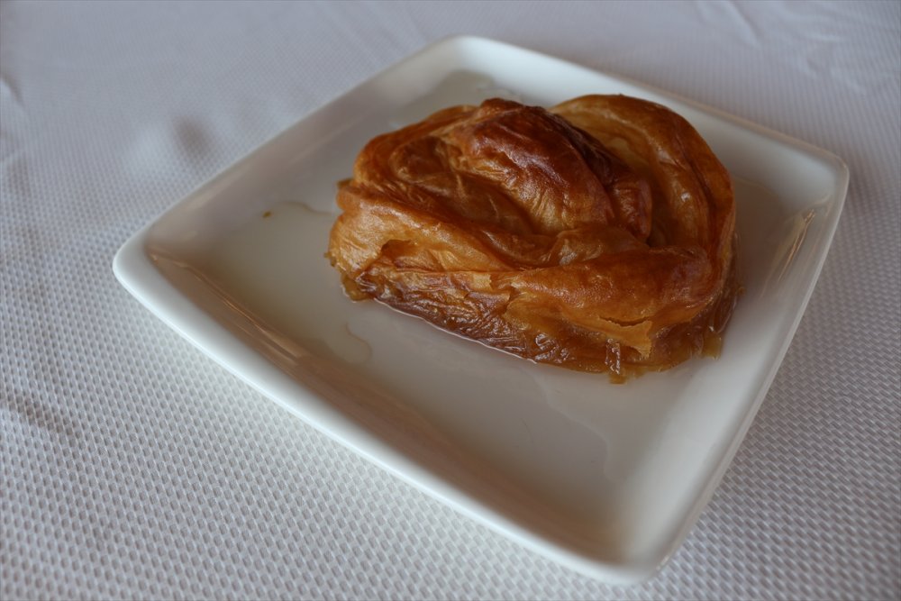 "Yufka açıldıktan sonra içine, çekilmiş olan kaymak bırakılır. Kaymağın yuvarlak bir şekilde tepsiye dizilmesinin ardından üzerine tereyağ sürüldükten sonra tepsi fırına verilir. 250 derece ateşte 25 dakika kalır. Fırından çıktıktan sonra üzerine şerbet dökülerek servise hazır hale gelir. Şerbeti bir kilo suya, bir kilo şeker katılarak hazırlanır. Hafif bir tatlıdır."