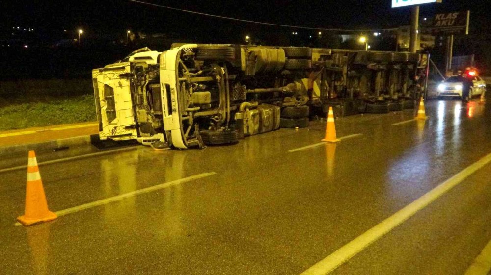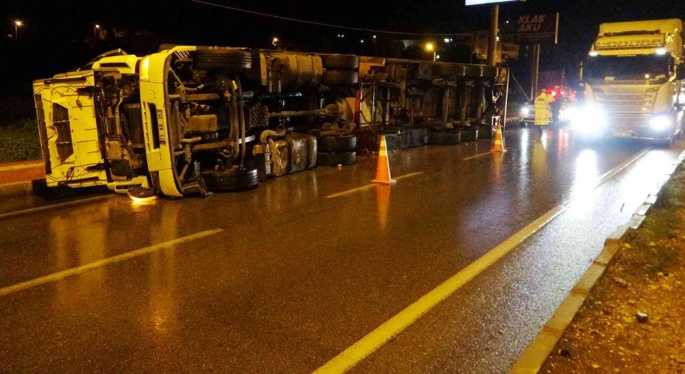 Sağanak Yağışta Kontrolden Çıkan Tır Devrildi: 1 Yaralı