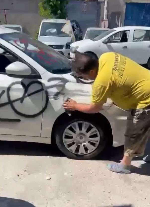 Görüntülerin ardından araç sahibi sprey boyaları temizletti. Araçta sadece zararın lastiklerde olduğu belirtildi.