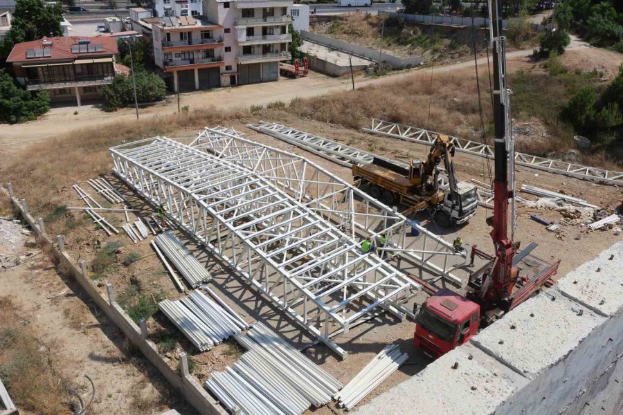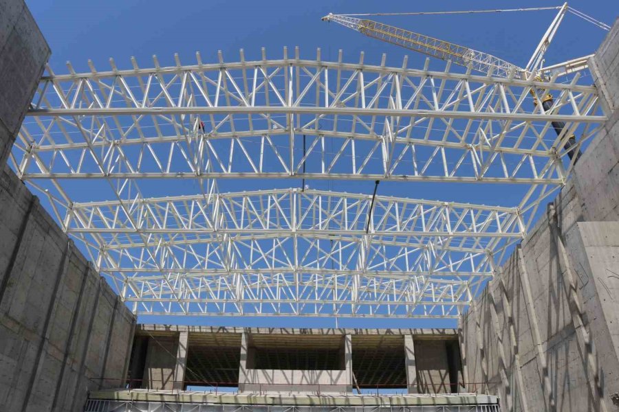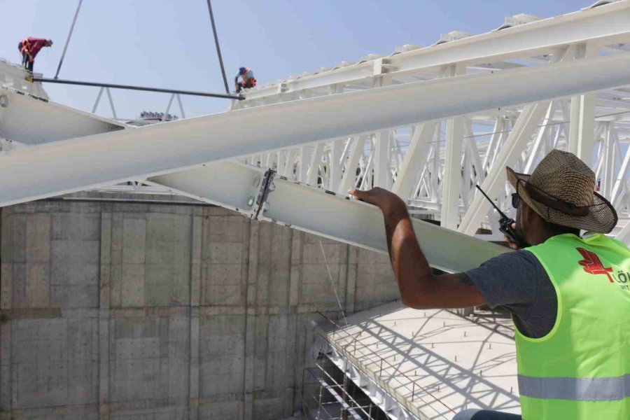 Antalya Büyükşehir Belediyesi'nin Serik Kongre ve Kültür Merkezi Projesi'nde inşaat çalışmaları hızla sürüyor. Projede ara sahne, üst balkon, çelik ve döşeme beton imalatları tamamlanırken, çelik çatı imalatında sona yaklaşıldı.