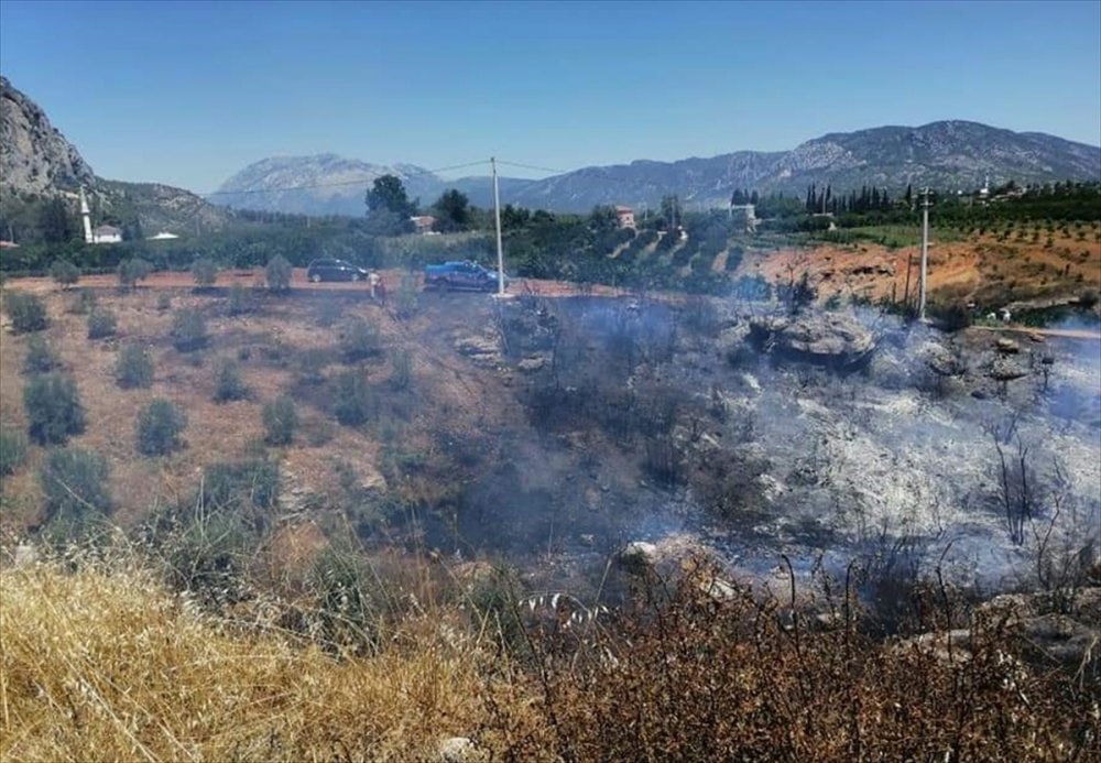 Serik'te Çıkan Yangında Zeytin Ağaçları Ve Otomobil Zarar Gördü