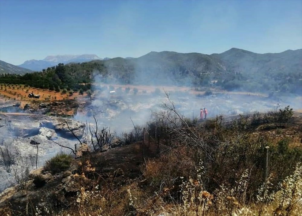 Yangında çalılık alan, zeytin ağaçları, mezarlıkta bulunan bazı ağaçlar ile otomobil zarar gördü.