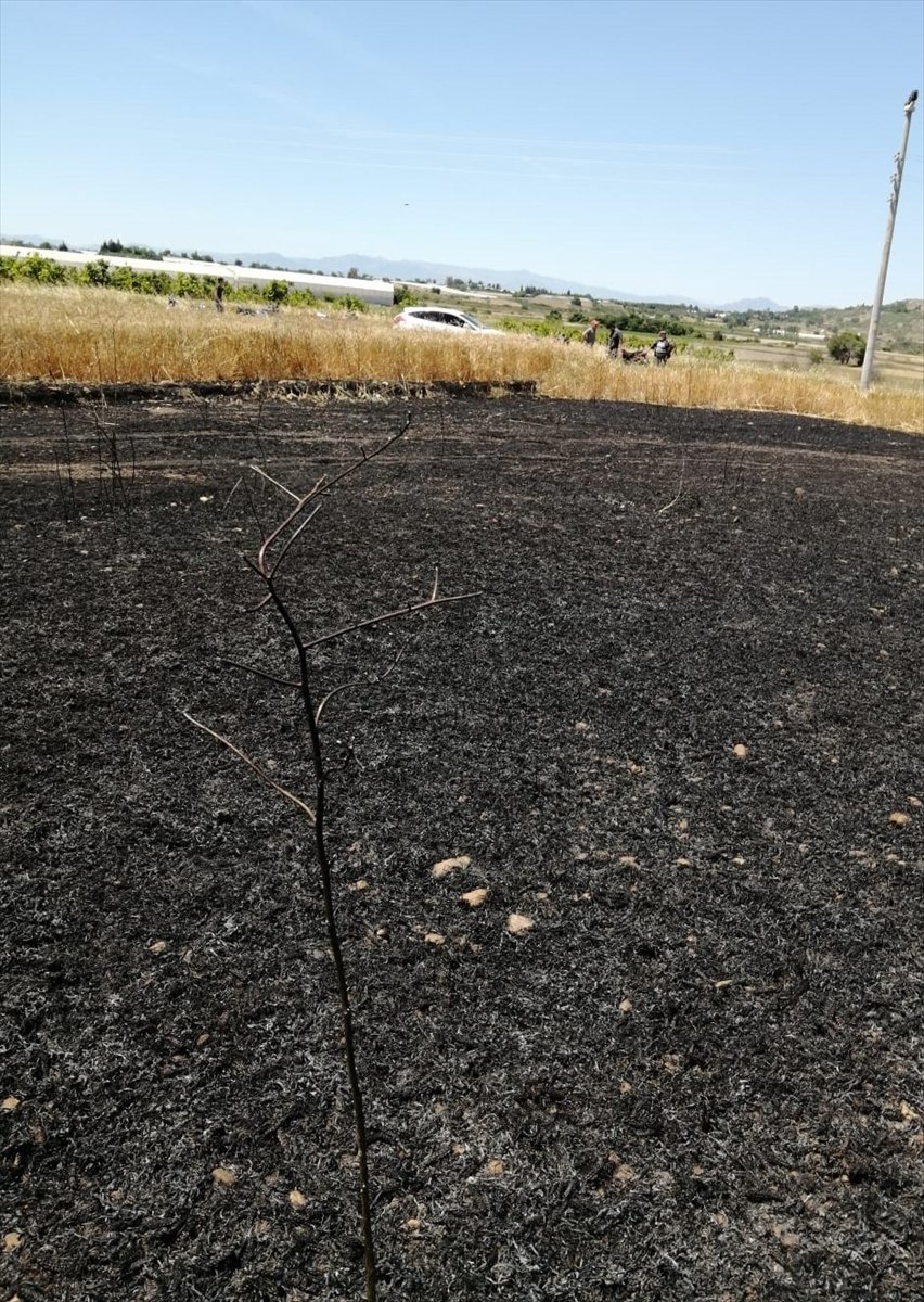 Serik ilçesinde tarım arazisinde çıkan yangın ekinlere zarar verdi.