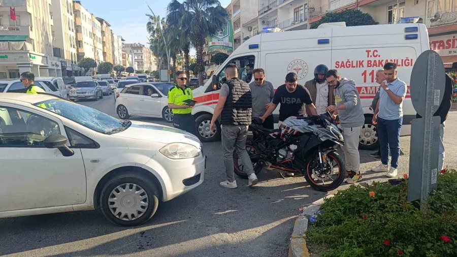 Antalya'nın Manavgat ilçesinde otomobil ile motosikletin çarpışması sonucu meydana gelen kazada, çarpmanın etkisiyle motosikletten fırlayarak takla atan sürücü, başını otomobilin camına çarptı. Yaralı sürücü hastaneye kaldırıldı.