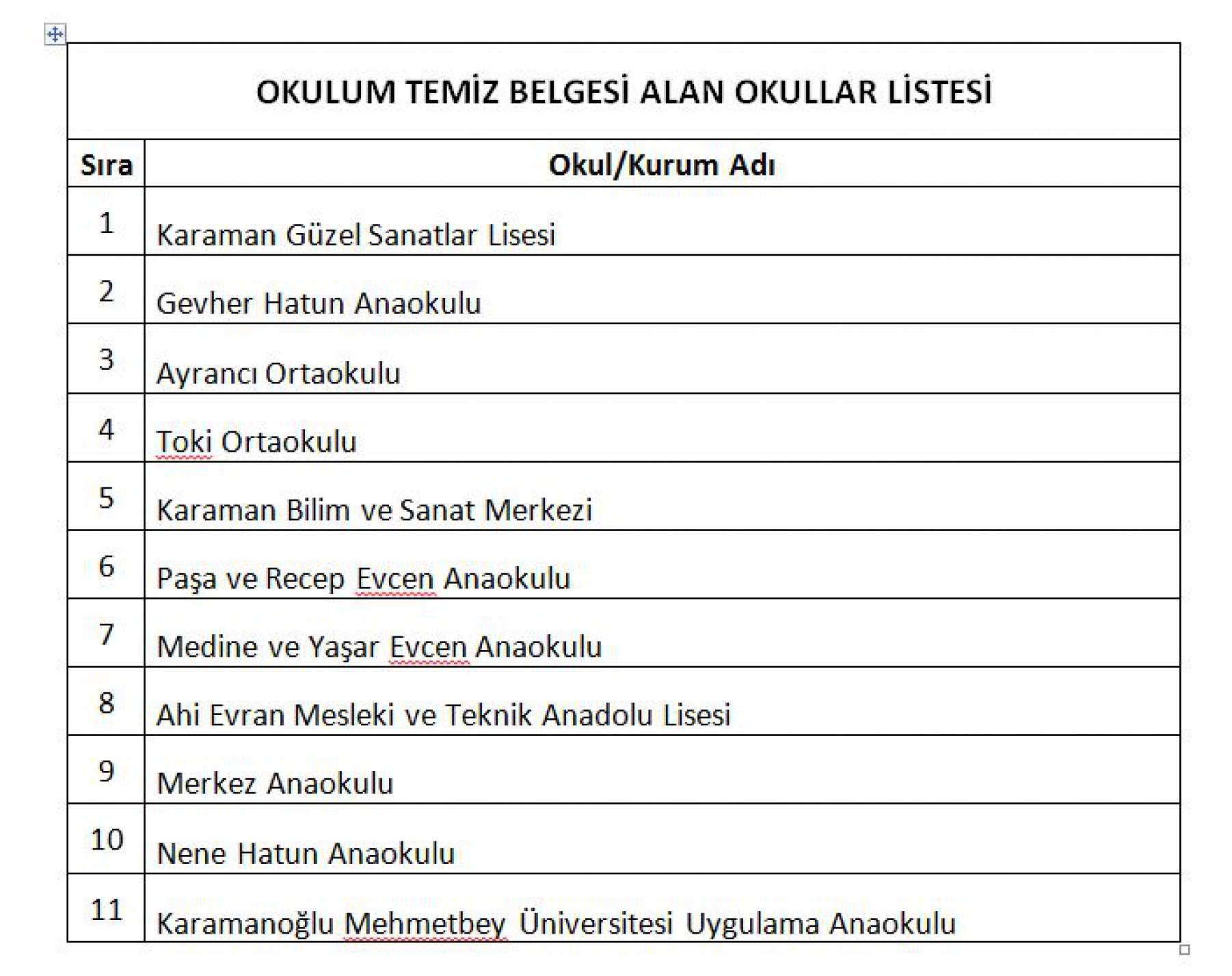 Karman İl Milli Eğitim Müdürü Mehmet Çalışkan, yapmış oldukları çalışmalarla "Okulum Temiz" belgesini alan okul yöneticilerini tebrik etti. Çalışkan, "Özellikle salgın sürecinde bu tür çalışmalar önem arz etmektedir. Bu süreçte hepimize önemli görevler düşüyor. Öğrencilerimiz okul kapısından girdiği andan itibaren bizlere emanet. Öğrencilerimizin sağlıklı ortamlarda eğitim alması bizlerin gayreti ve hassasiyetiyle olacaktır. Almış olduğunuz belgeyle okullarımızın temizliğini tescillemiş oldunuz. Göstermiş olduğunuz hassasiyetten ve yaptığınız çalışmalardan dolayı sizleri tebrik ediyorum" diye konuştu. Program İl Milli Eğitim Müdürü Mehmet Çalışkan'ın okul yöneticilerine belgelerini vermesiyle sona erdi.