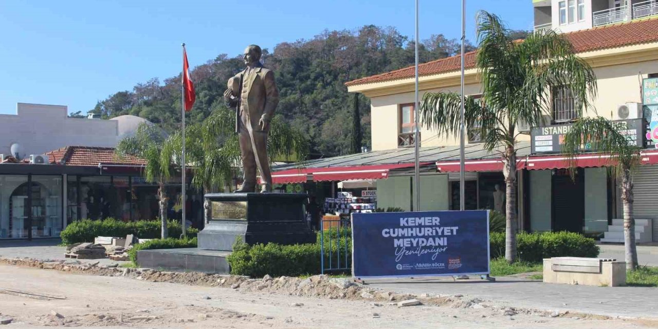 Kentsel Tasarım Projesi ile bambaşka bir görünüme kavuşan Kemer Cumhuriyet Meydanı, Antalya Büyükşehir Belediyesi ve Kemer Belediyesi işbirliğiyle yaza hazır hale getiriliyor. Çalışmalar kapsamında meydanın zemininde bulunan ve yıpranan traverten taş kaplamaları için 3 bin metrekare taş Büyükşehir Belediyesi tarafından temin edildi. Yıpranan taşlarının sökümünün ardından meydana yeni taşlar döşeniyor. Çalışmaların tamamlanmasının ardından meydan yeniden kullanıma açılacak.