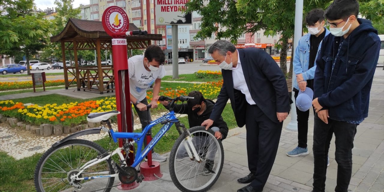 Belediye Başkanı Mehmet Tutal, vatandaşların bisiklet kullanımı esnasında karşılaştığı teknik sorunları anında çözmek adına ilçenin iki faklı noktasına bisiklet tamir istasyonu kurulduğunu kaydetti.