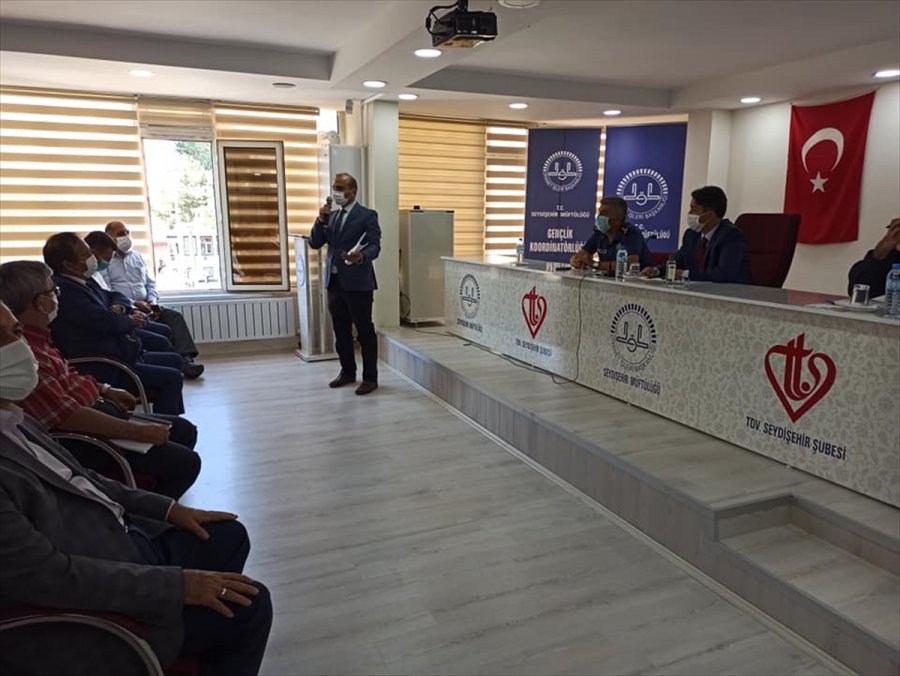 Seydişehir İlçe Müftülüğü Toplantı Salonu'nda gerçekleştirilen programda pandemi nedeniyle alınan tedbirler kapsamında ilçede oluşturulan mahalle denetim ekiplerinin çalışmaları hakkında bilgi verildi.