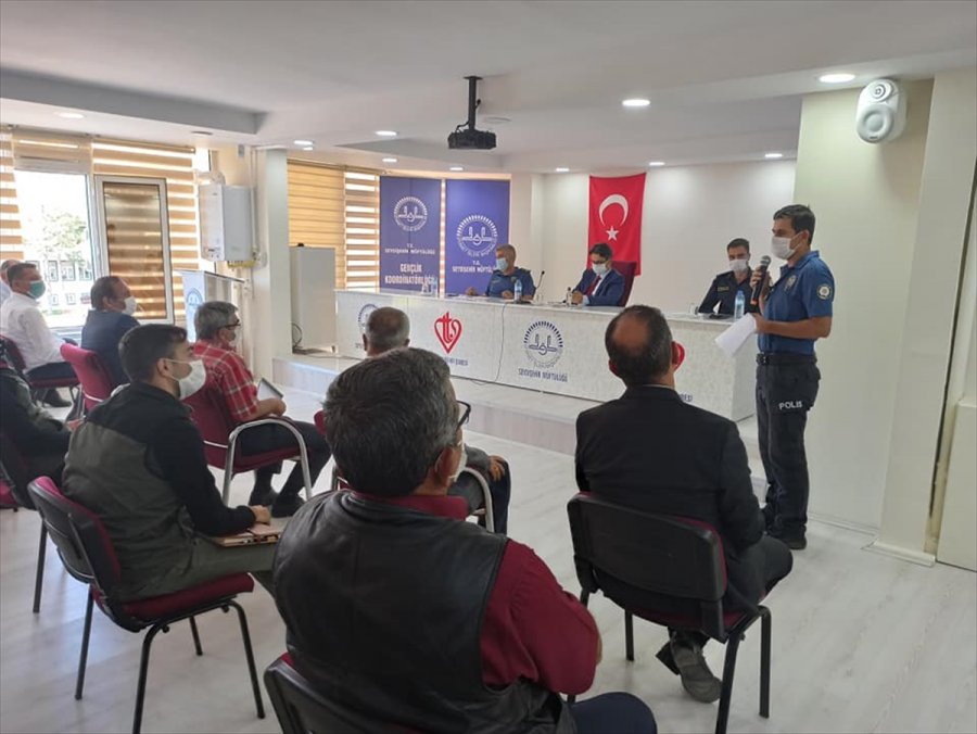 Kaymakam Erdoğan merkez ve kırsal mahalle muhtarları ile durum değerlendirme ve bilgilendirme toplantısı gerçekleştirdiklerini belirterek, "Halka daha iyi hizmet verebilmek, ilçenin sorunlarına çözüm getirebilmek ve tüm dünyayı etkisi altına alına Kovid-19 salgını nedeniyle alınması gereken tedbirler hakkında bilgilendirme yaptık. Muhtarlarımızla Kovid-19 salgını ile ilgili ilçemizdeki son durumu değerlendirdik. Muhtarlarımızla sürekli diyalog halindeyiz." ifadesini kullandı.