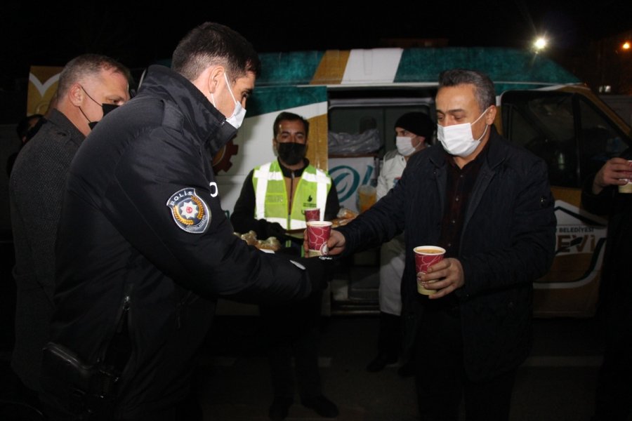 Konya'da Seydişehir Belediyesi, sokağa çıkma kısıtlamasında soğuk havada gece nöbet tutan güvenlik güçleri ve sağlık çalışanlarına sıcak çorba ikramında bulundu.