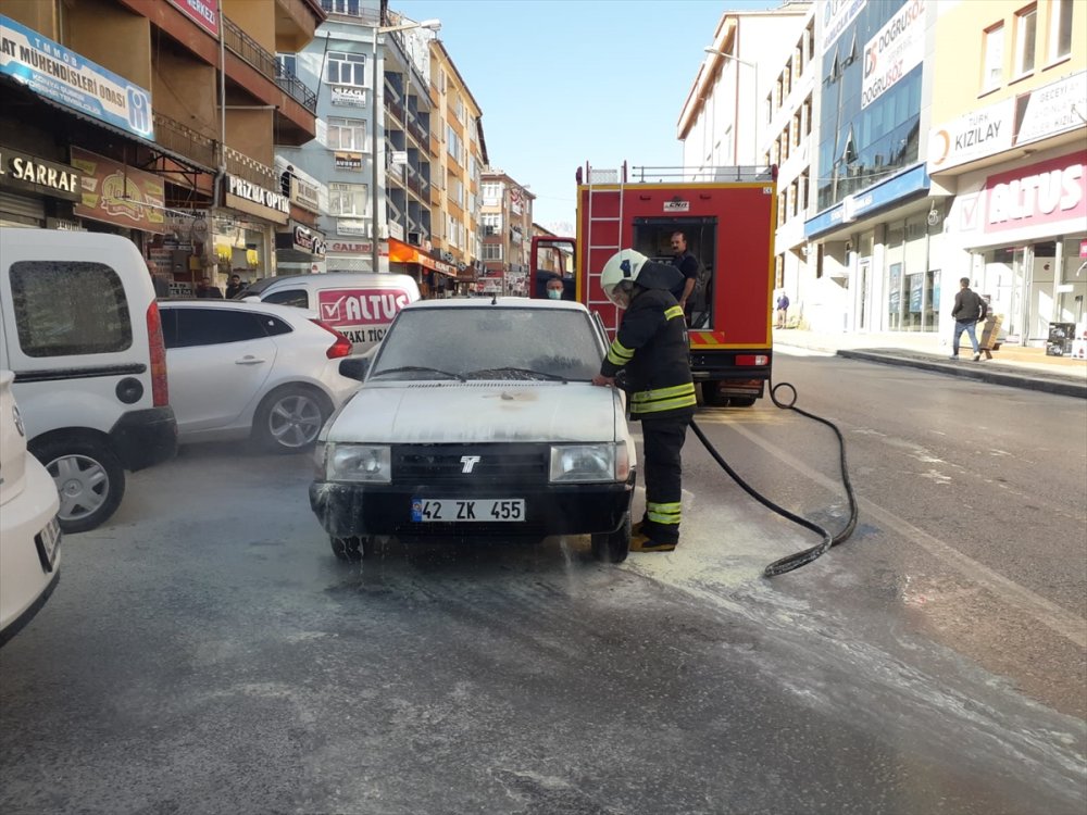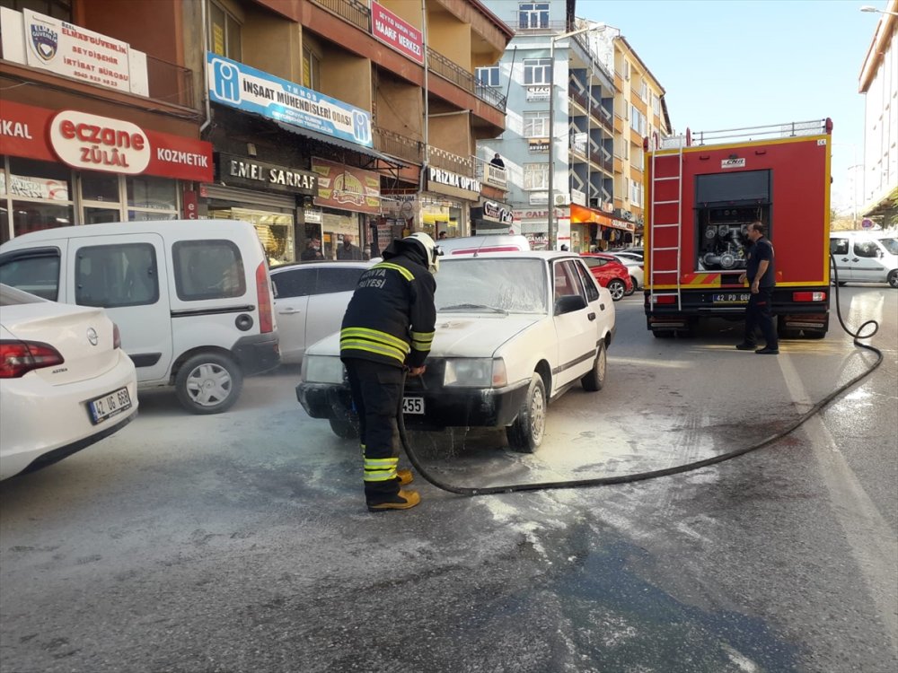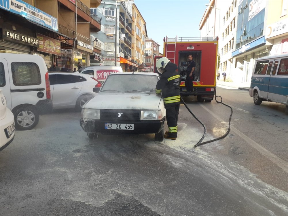 Şeref Arslanoğlun idaresindeki 42 ZK 455 plakalı otomobil, Hürriyet Caddesi'nde seyir halindeyken aniden yanmaya başladı.
