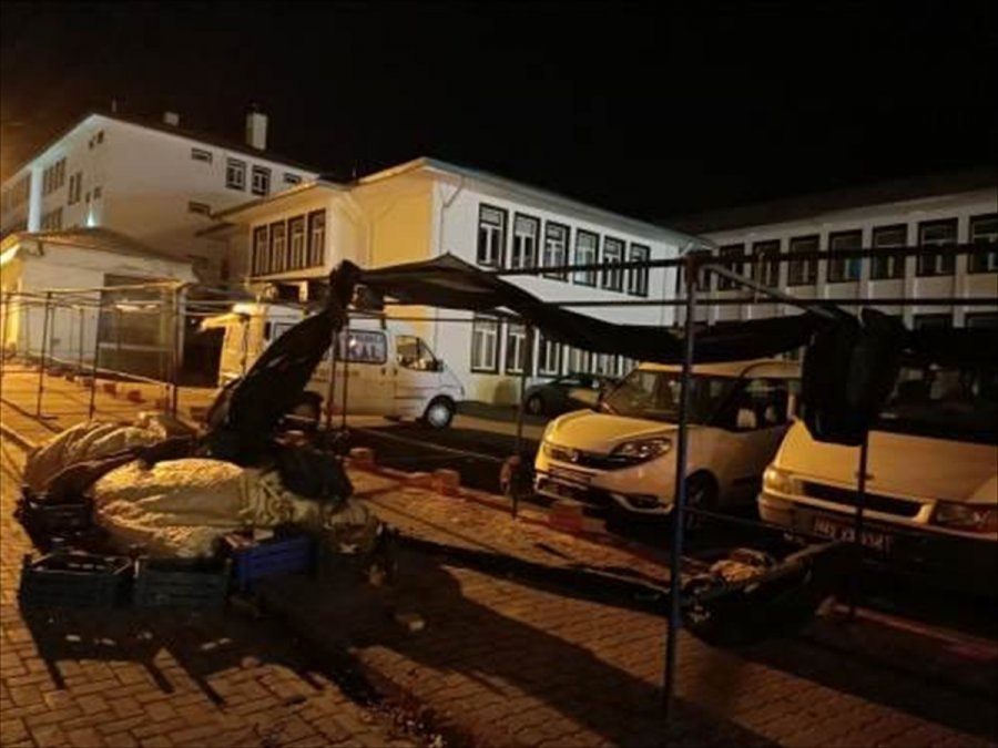 İlçede gece saatlerinde etkili olan şiddetli rüzgar, hayatı olumsuz etkiledi.