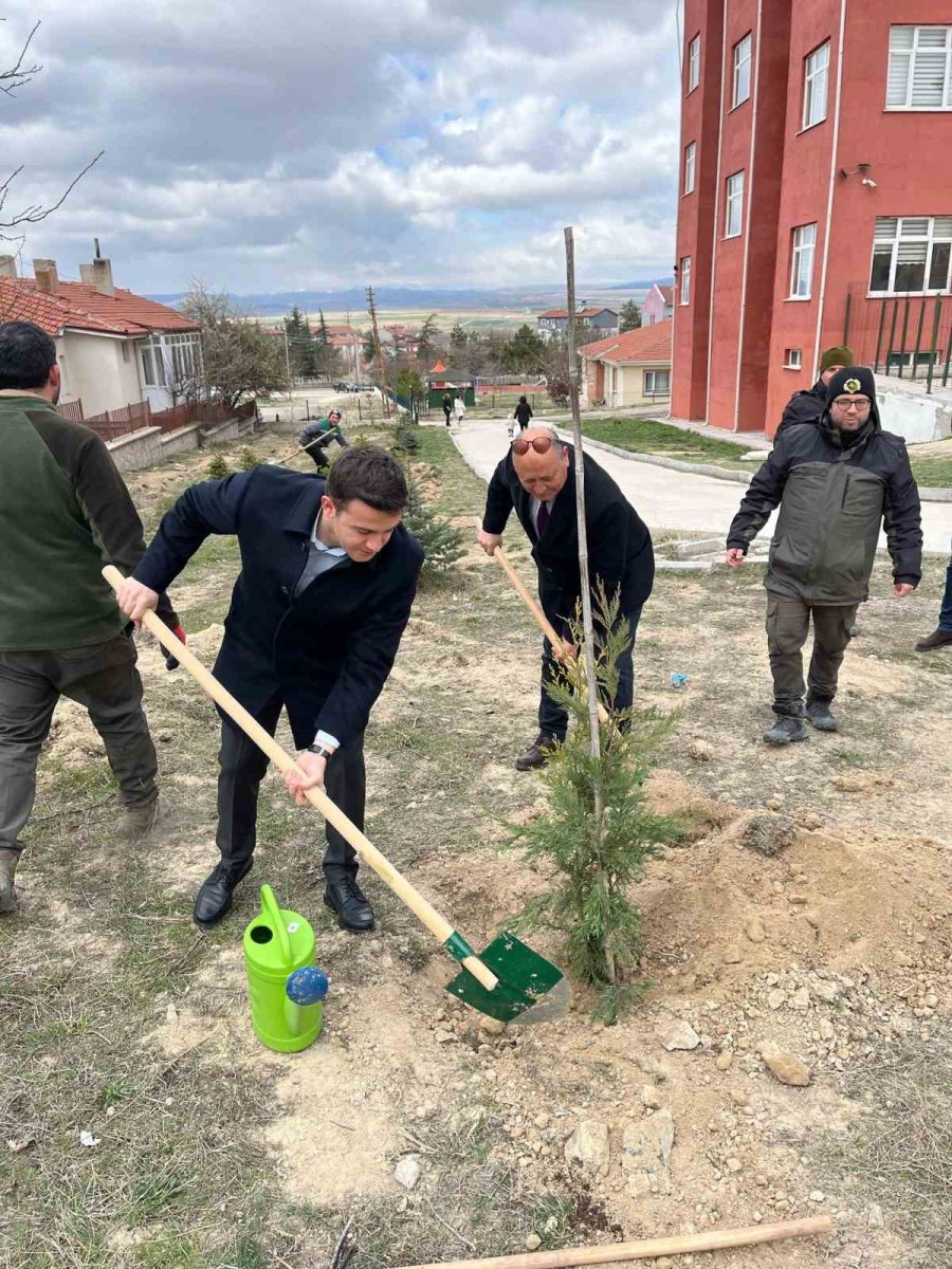 Eskişehir Seyitgazi ilçesinde, 21 Mart Dünya Ormancılık Haftası kapsamında Şehit Ramazan Canıgür Mesleki ve Teknik Anadolu Lisesi bahçesinde fidan dikimi...