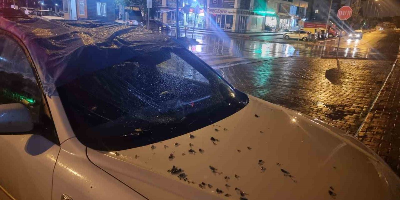 İlçeye bağlı Hacı Saki Mahallesinde şiddetli rüzgardan dolayı nereden düştüğü belirlenemeyen cam, park halindeki araca isabet etti. Araçta geniş çapta maddi hasar oluşurken, ihbar üzerine bölgeye polis ekipleri sevk edildi. Ekipler çevrede güvenlik önlemi alırken inceleme yaptı.