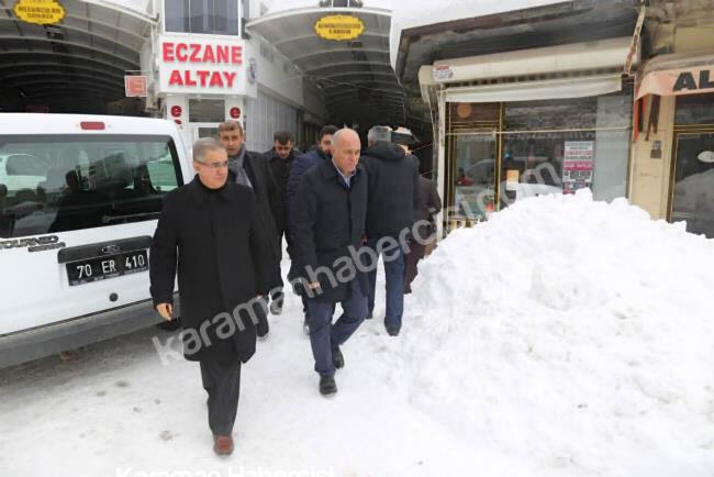 Karaman’da kış mevsiminin yoğun olarak yaşanması dolayısıyla son 65 yıl içerisinde en yüksek kar yağışı gerçekleşerek 85 cm. oldu. Yoğun kar yağışı nedeniyle Bedesten çarşısındaki işyerlerini kaplayan çatının üzerindeki karın ağırlığı taşıyamayarak çökmesi ve bazı dükkânların maddi hasar görmesi nedeniyle Vali Süleyman Tapsız ve Belediye Başkanı Ertuğrul Çalışkan çarşı esnafını ziyaret ederek geçmiş olsun dileklerinde bulundular.