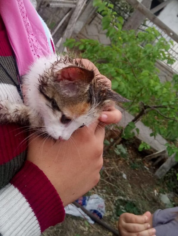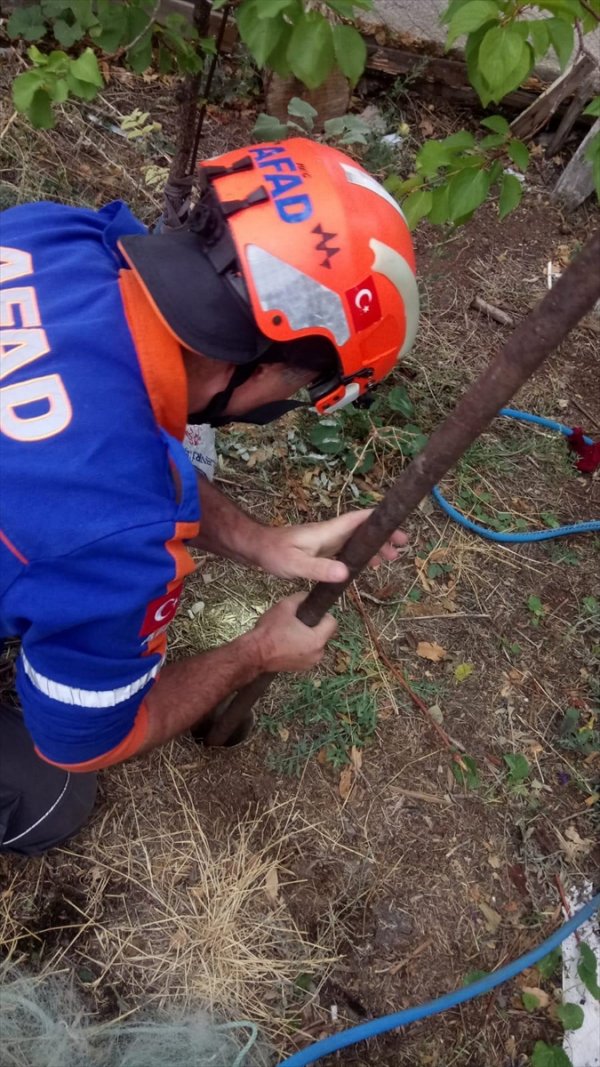 Aksaray'da 5 metre derinliğindeki sondaj kuyusuna düşen yavru kedi AFAD ekiplerince kurtarıldı.