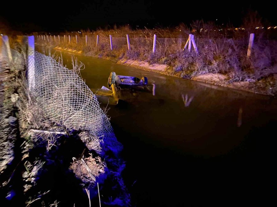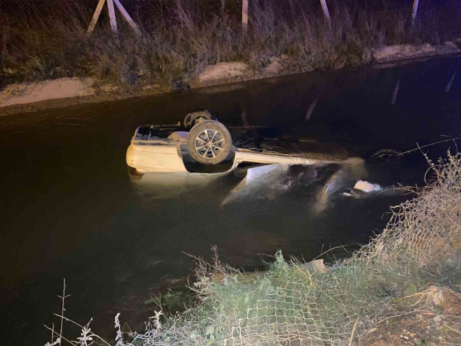 Sürücüsünün Direksiyon Hakimiyetini Kaybettiği Otomobil Kanala Uçtu