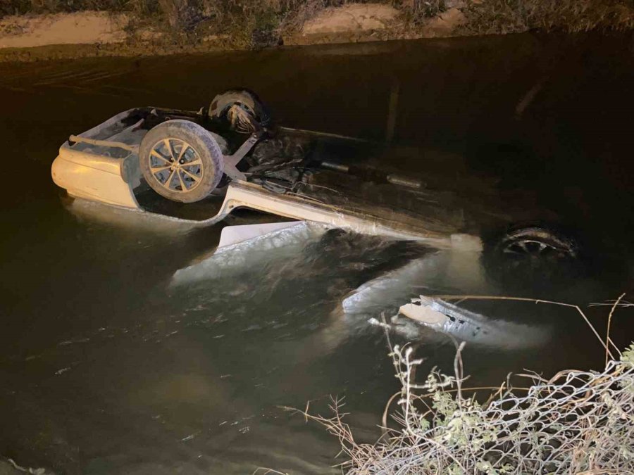 Antalya'nın Serik ilçesinde sürücüsünün direksiyon hakimiyetini kaybettiği otomobil, sulama kanalına uçtu.