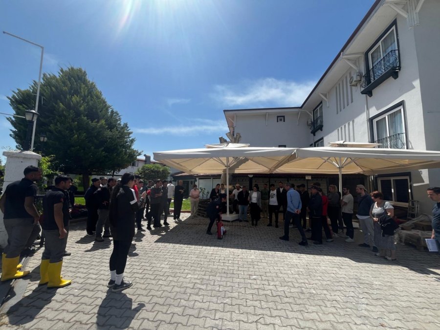 Antalya'da otel personeline yönelik verilen yangın eğitimi sırasında tatbikat gerçek oldu.