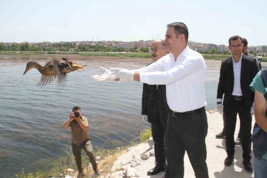 Konuşmaların ardından kafeslerinden çıkarılan yaban ördekleri Beyşehir Kaymakamı Mehmet Kemal Akpınar, İlçe Belediye Başkanı Adil Bayındır, Konya Doğa Koruma ve Milli Parklar Bölge Müdürü Orhan Çatalçam ve protokol tarafından tatlı sulara salındı.