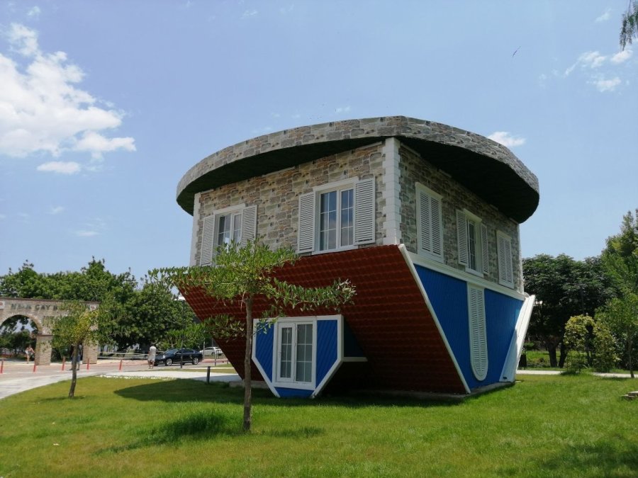 Türkiye'nin önemli turizm merkezlerinden olan Antalya'nın Kemer ilçesinde belediye tarafından 2021 yılında açılan Kemer Villa isimli ters ev ziyaretçi akınına uğruyor.