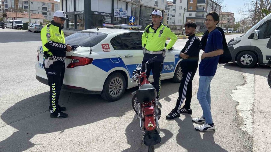 Aksaray'da trafik ekiplerinin durdurduğu plakasız ve aynasız motosikletin kasksız olan sürücüsüne 26 bin 965 lira ceza kesildi.