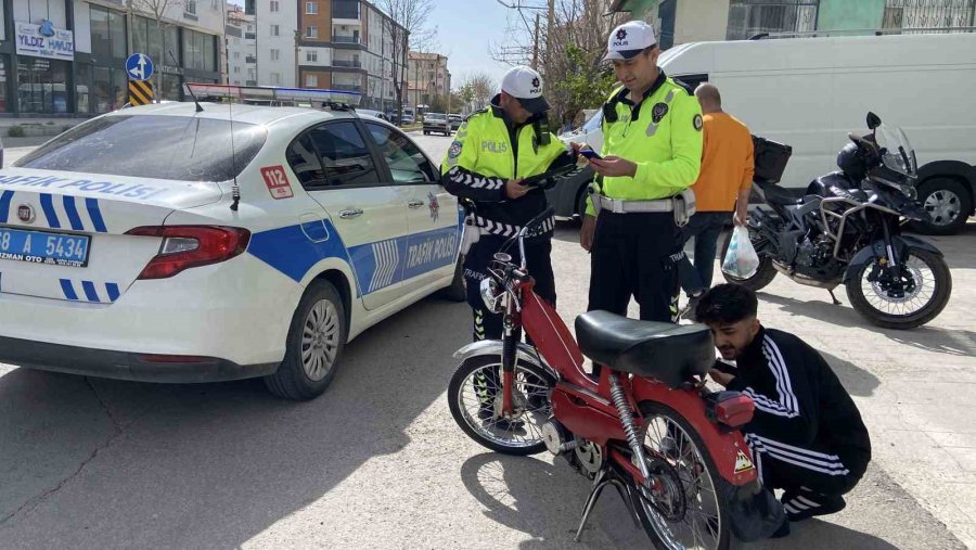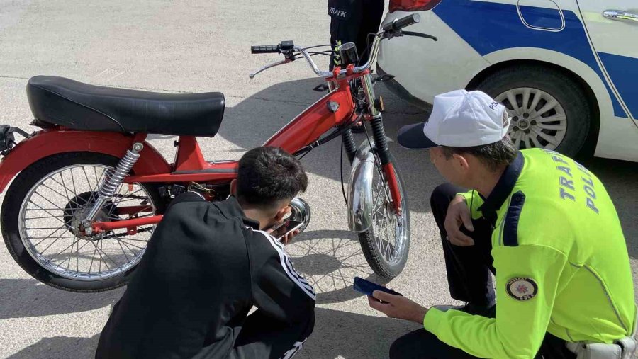 Edinilen bilgiye göre, şehir genelinde motosiklet kullanıcılarına yönelik sıkı bir takip başlatan İl Emniyet Müdürlüğü Trafik Tescil ve Denetleme Şubesi ekipleri, Paşacık Mahallesi Selçuk Bulvarı üzerinde sürücüsünü kasksız gördüğü motosikleti durdurdu. Trafik ekipleri sürücüsü kasksız olan motosikletin plakasının bulunmadığını, herhangi bir tescil kaydının da olmadığını belirledi. Bunun üzerine yasal işlemlere başlayan trafik ekipleri, şasi numarası da olmayan motosikleti trafikten men ederek otoparka çektirdi. Sürücü M.Y.'ya (19) kasksız olarak aynasız ve plakasız motosiklete binmekten 26 bin 965 lira para cezası kesildi.
