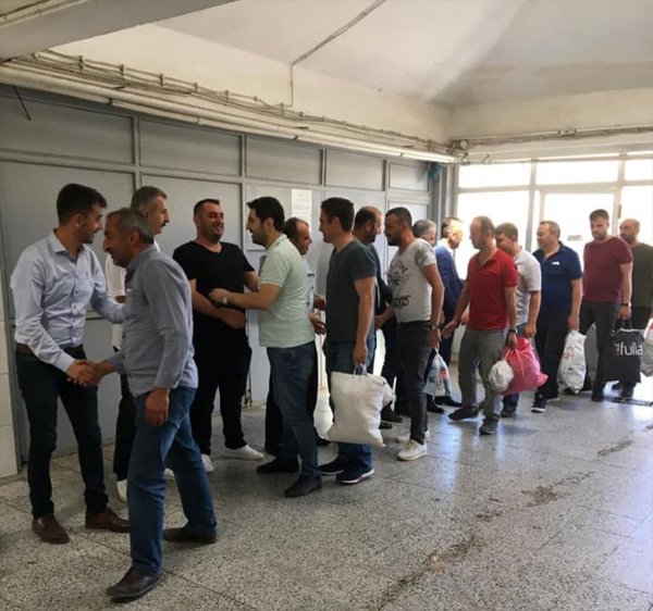 Sendikanın Orta Anadolu Şubesi Başkanı Talih Kocabıyık ve Şube Sekreteri Selim Arslan tarafından karşılanan Bayrak, daha sonra vardiya değişimi yapan özel sektöre ait maden ocağına geçti.