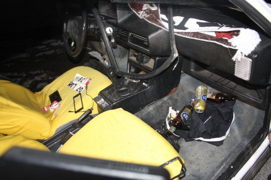 Diğer taraftan, trafik ekiplerinin dur ihtarına uymayarak kaçan ve kaza yapan otomobilin şoför koltuğunun önünde ve yan tarafında çok sayıda boş ve dolu bira şişesinin olduğu gözlendi.