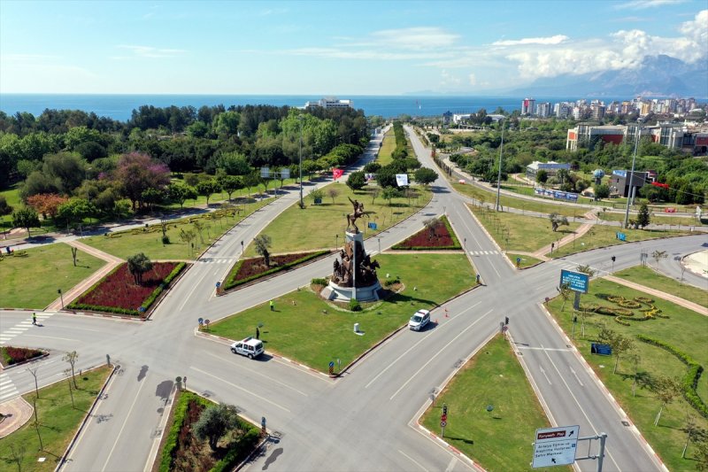 Yeni tip koronavirüsle (Kovid-19) mücadele kapsamında sokağa çıkma kısıtlaması getirilen illerden Antalya ve Muğla'da ünlü sahil, plaj ve meydanlar boş kaldı.