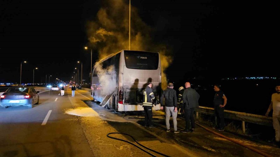 Turistleri Taşıyan Otobüs Yandı, Faciadan Dönüldü