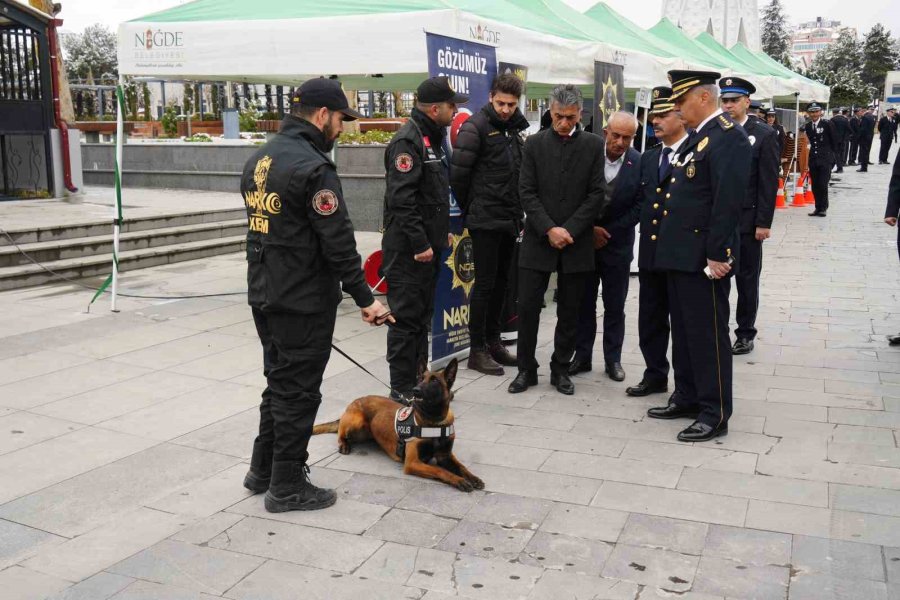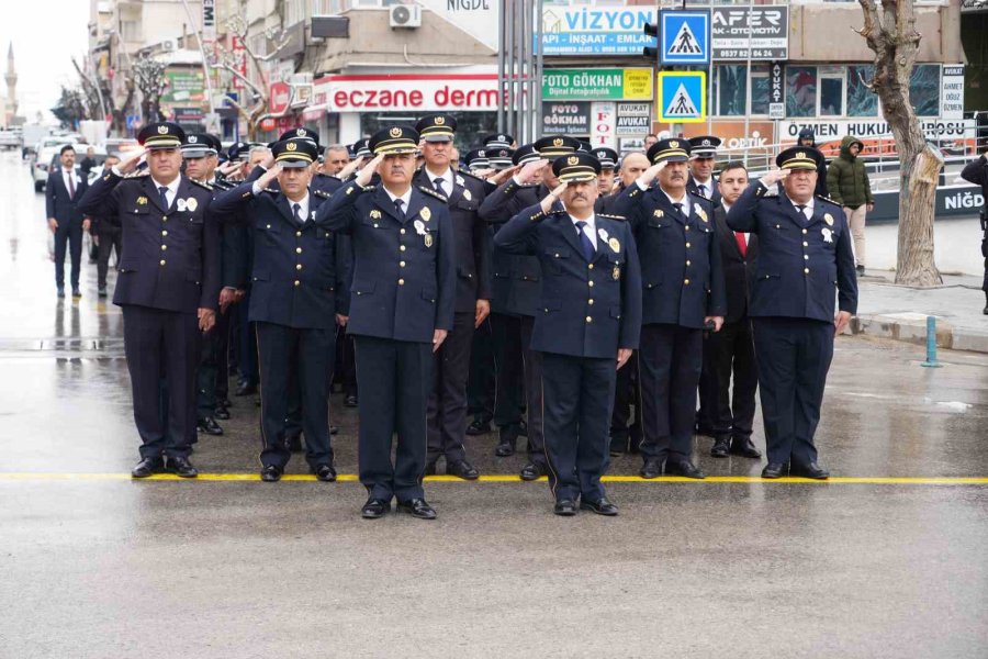 Cumhuriyet Meydanı'ndaki törende İl Emniyet Müdürü Yılmaz Delen ve Niğde Polis Meslek Eğitim Merkezi Müdürü Mehmet Kemal Arısoy, Atatürk Anıtı'na çelenk sundu. Çelenk sunumun ardından saygı duruşunda bulunuldu, İstiklal Marşı okundu. Cumhuriyet Meydanı'ndaki törenin ardından Şehit Ömer Halisdemir Meydanı'nda açılan emniyet teşkilatında bugüne kadar kullanılan eşyaların sergisi ziyaret edildi.