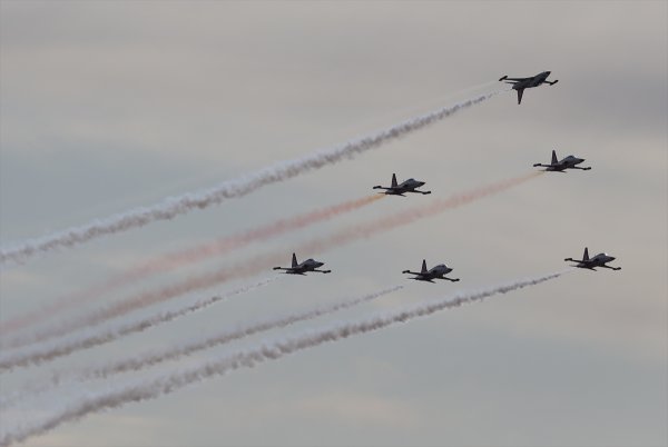 Gösteri öncesi prova uçuşunu yapan "Türk Yıldızları", gökyüzünde adeta görsel şölen sundu.