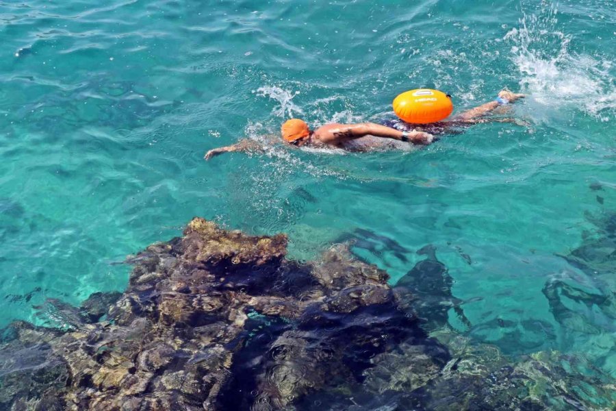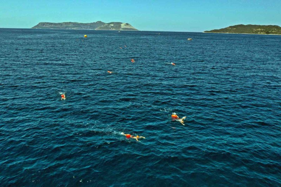 Antalya'nın Kaş ilçesi ile Yunanistan'ın Türkiye'ye en yakın noktası Meis Adası arasındaki 7.1 kilometre uzunluğundaki parkurda yüzme yarışması düzenlendi.