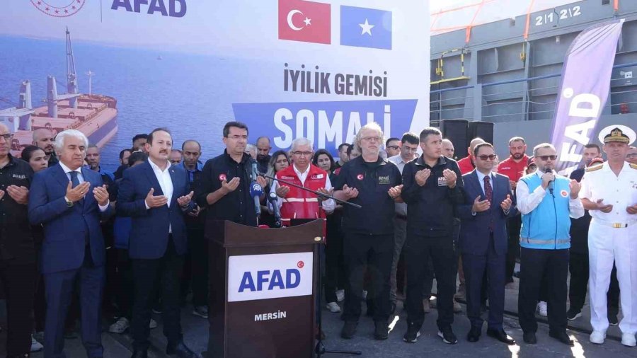 Konuşmaların ardından yardım gemisi, yapılan dualar eşliğinde Somali'ye gitmek üzere Mersin Limanı'ndan hareket etti.