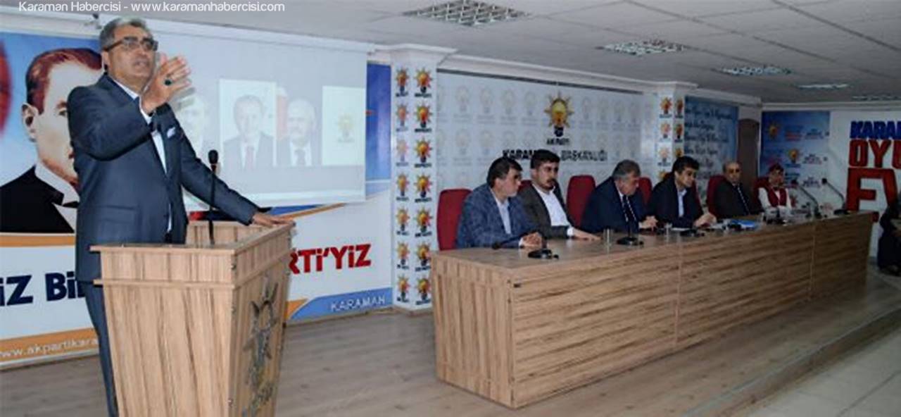 AK Parti Karaman İl Teşkilatı tarafından düzenlenen seçim değerlendirme toplantısında konuşan AK Parti Karaman Milletvekili, TBMM Tarım Orman ve Köyişleri Komisyonu Başkanı Recep Konuk, Karaman’ın anayasa değişikliğine ve anayasa ile getirilen tek elden y