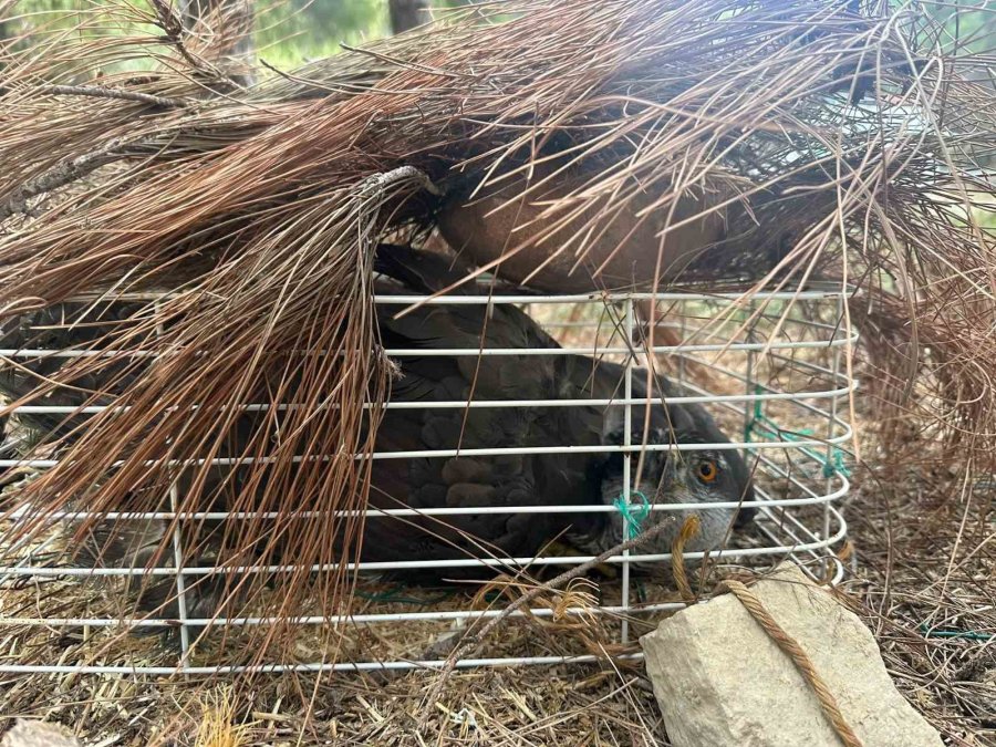 Mersin'de iğne yapraklı çam ağaçları arasında kafesli tuzağa takılan ve ölmek üzere olan nesli tükenme tehlikesi altındaki bayağı çakır kuşunu polis kurtardı.