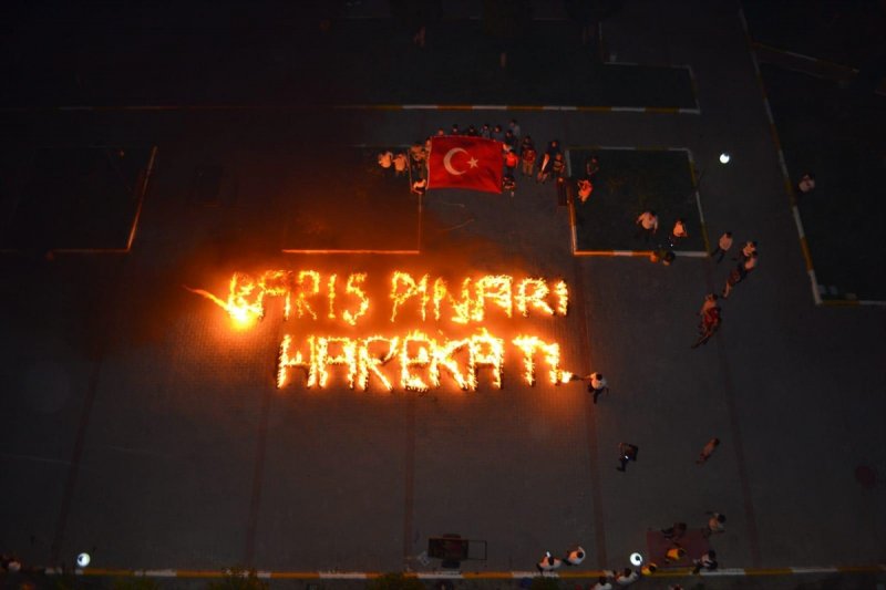 Türk bayrağı ile "Yanınızdayız" yazılı pankart da açan öğrencilerin oluşturduğu görseller beğeni kazandı.