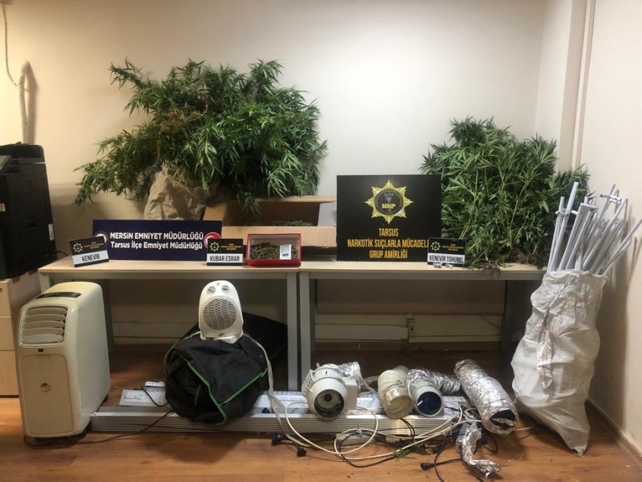 İl Emniyet Müdürlüğünden yapılan açıklamaya göre, Tarsus ilçe Emniyet Müdürlüğüne bağlı Narkotik Suçlarla Mücadele Grup Amirliği ekipleri, kenevir üretimi ve ticaretini yapan şahıslara yönelik yaptığı çalışmalarda, G.Ç. isimli şahsın evinde üretim yaptığını tespit etti. Bunun üzerine belirlenen adrese operasyon düzenleyen ekipler, seraya döndürülen evde 27 kök kenevir bitkisi, 272 gram kubar esrar, 5,88 gram kenevir tohumu, 1 hassas terazi, kenevir bitkisi yetiştirmede kullanılan düzeneğe ait büyük boy çadır, 2 iklimlendirme cihazı, 2 havalandırma cihazı, 5 led aydınlatma lambası, 4 mini vantilatör, muhtelif kablo ve alüminyum borular ele geçirildi.